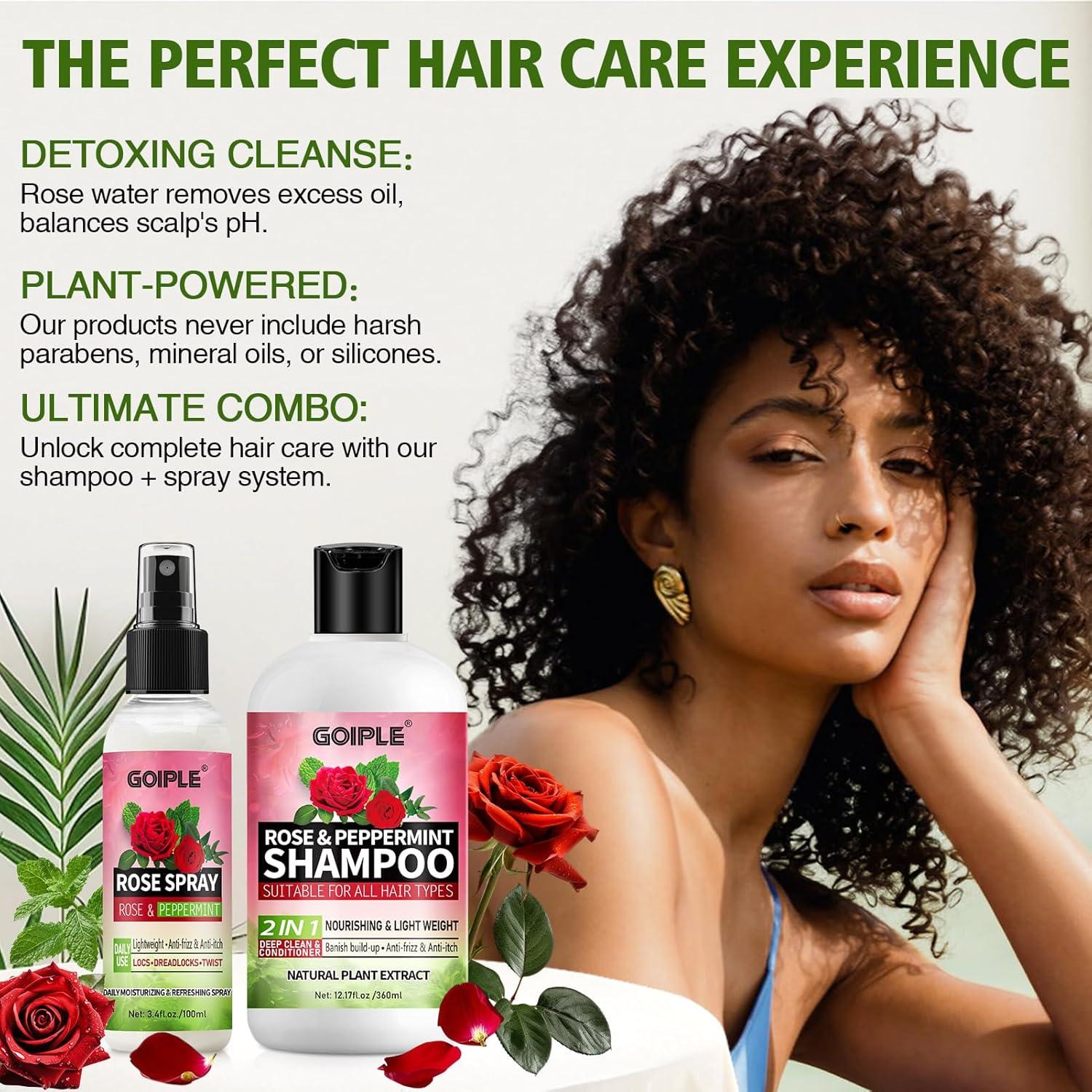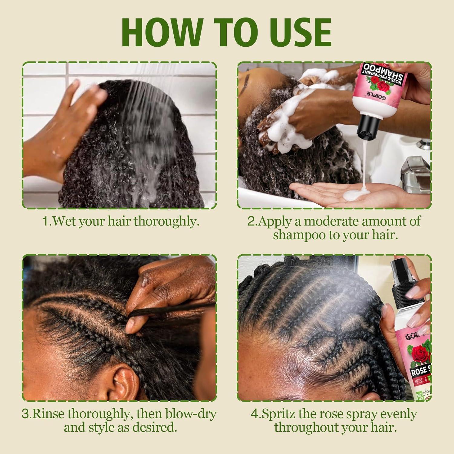 Revive and Thrive with Goiple Hair Care Set: Transform dull, dry braids with Rose Water Braid Spray, a powerhouse leave-in conditioner infused with rose water. Specially formulated as loc spray moisturizer, it nourishes the scalp. This hair oil spray strengthens hair from root to tip