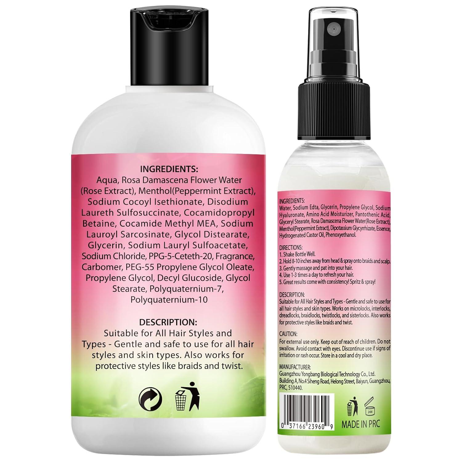Color & Style Guardian: Protect your intricate braids with our sulfate-free rose & mint shampoo and conditioner. Enriched with rose water, it cleanses while locking in moisture—ideal for rose braid spray touch-ups between washes
