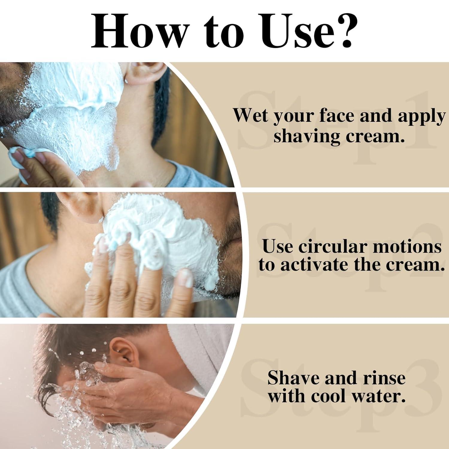 Pleasant Fragrance: With its subtle and refreshing scent, our shaving cream enhances your grooming routine,providing a refreshing start to your day, pleasurable experience from start to finish