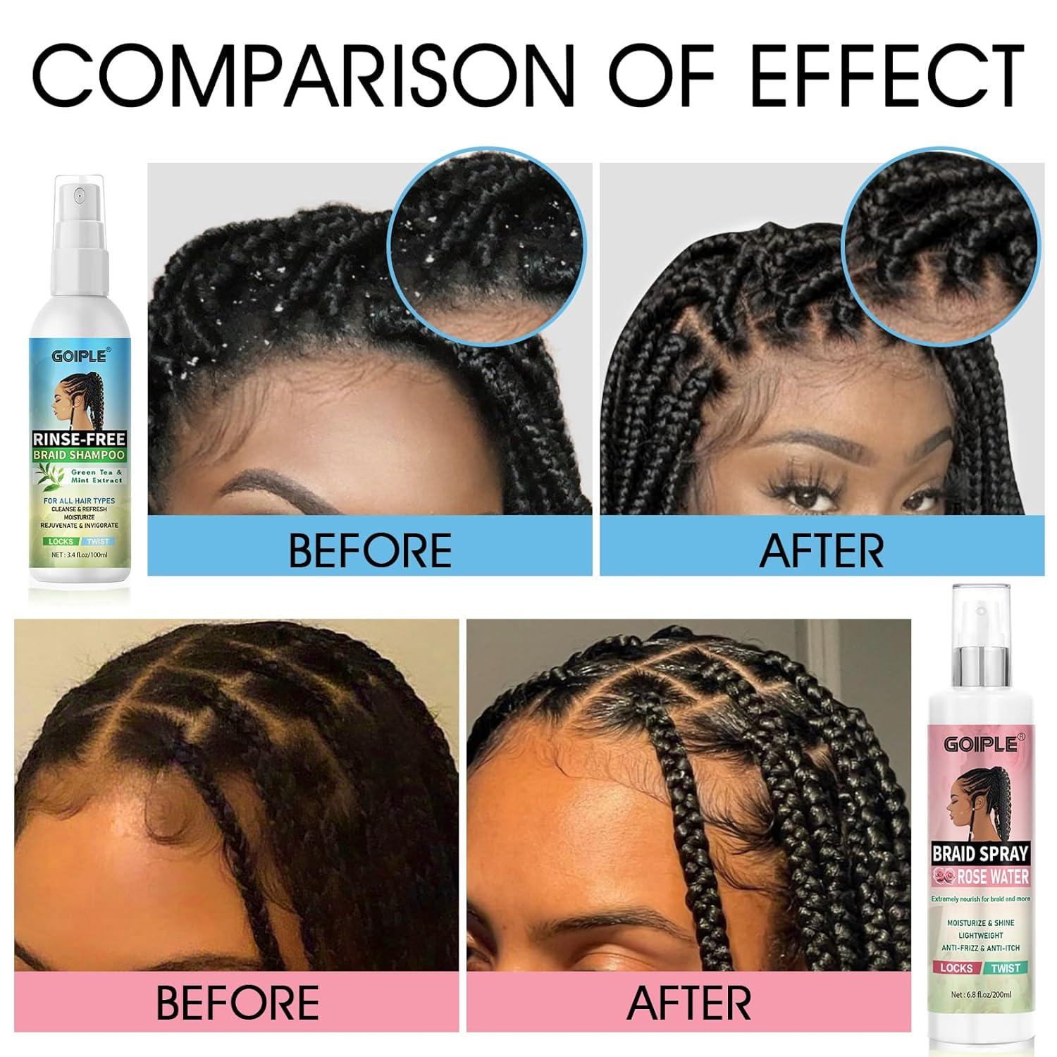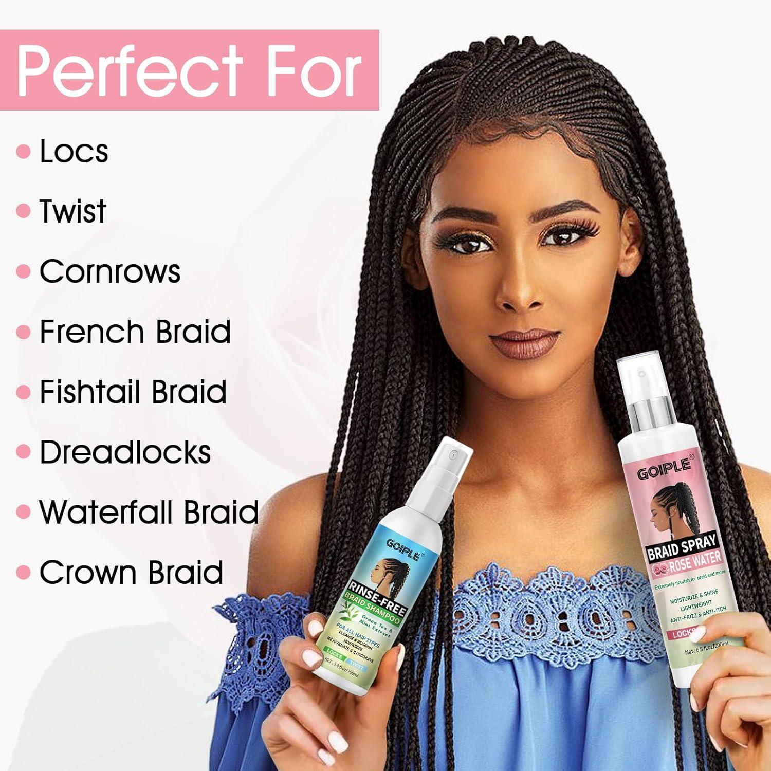 Anti Frizz & Flyaway: Say goodbye to messy braids! This rose water for hair smooths hair instantly, while the braid shampoo eliminates buildup and revitalizes scalp health. Ideal for coily, or textured hair seeking polished, long lasting looks