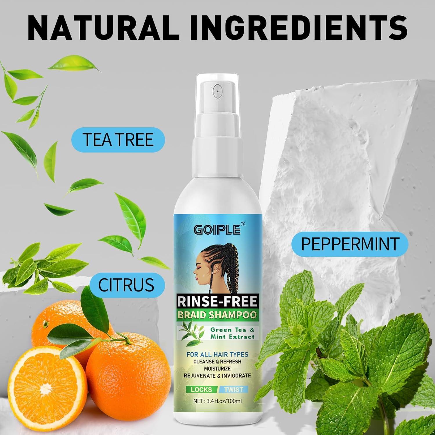 Braid Spray Rose Mint for Dreads, Dreadlocks, Locks – Rose Water Braid Spray No-Water Braid Shampoo for Locs, Twists, Weaves – Rinse-Free Dreadlock Shampoo for Build-Up, Odor, Itch & Flakes 2PCS(braid shampoo & braid spray-2pcs)