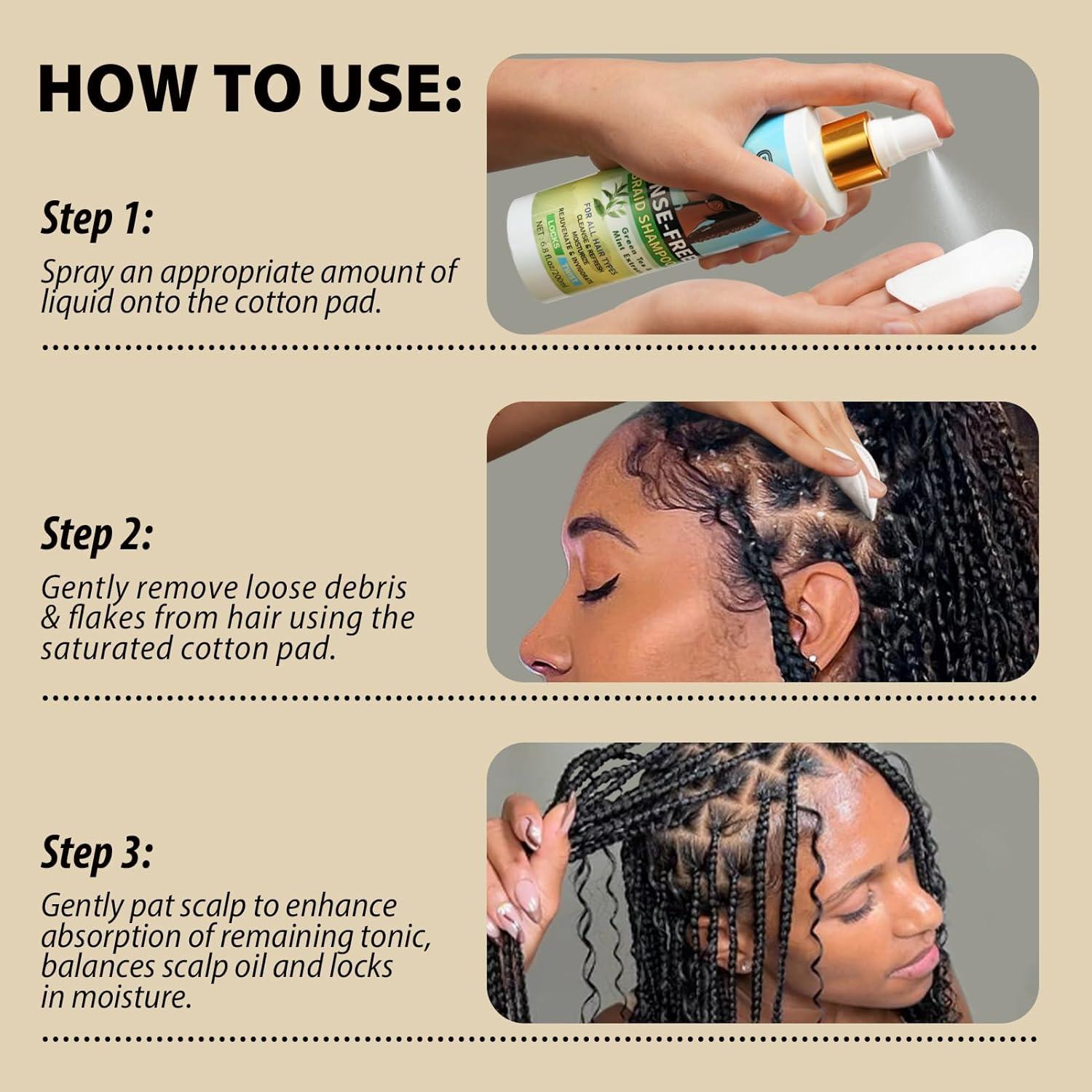 Natural Ingredients Soothe Itchy Scalp: This braid spray works on your scalp as well as your hair. It soothes braided styles and helps keep your scalp clean, removing dandruff and reducing the likelihood of flakes and discomfort