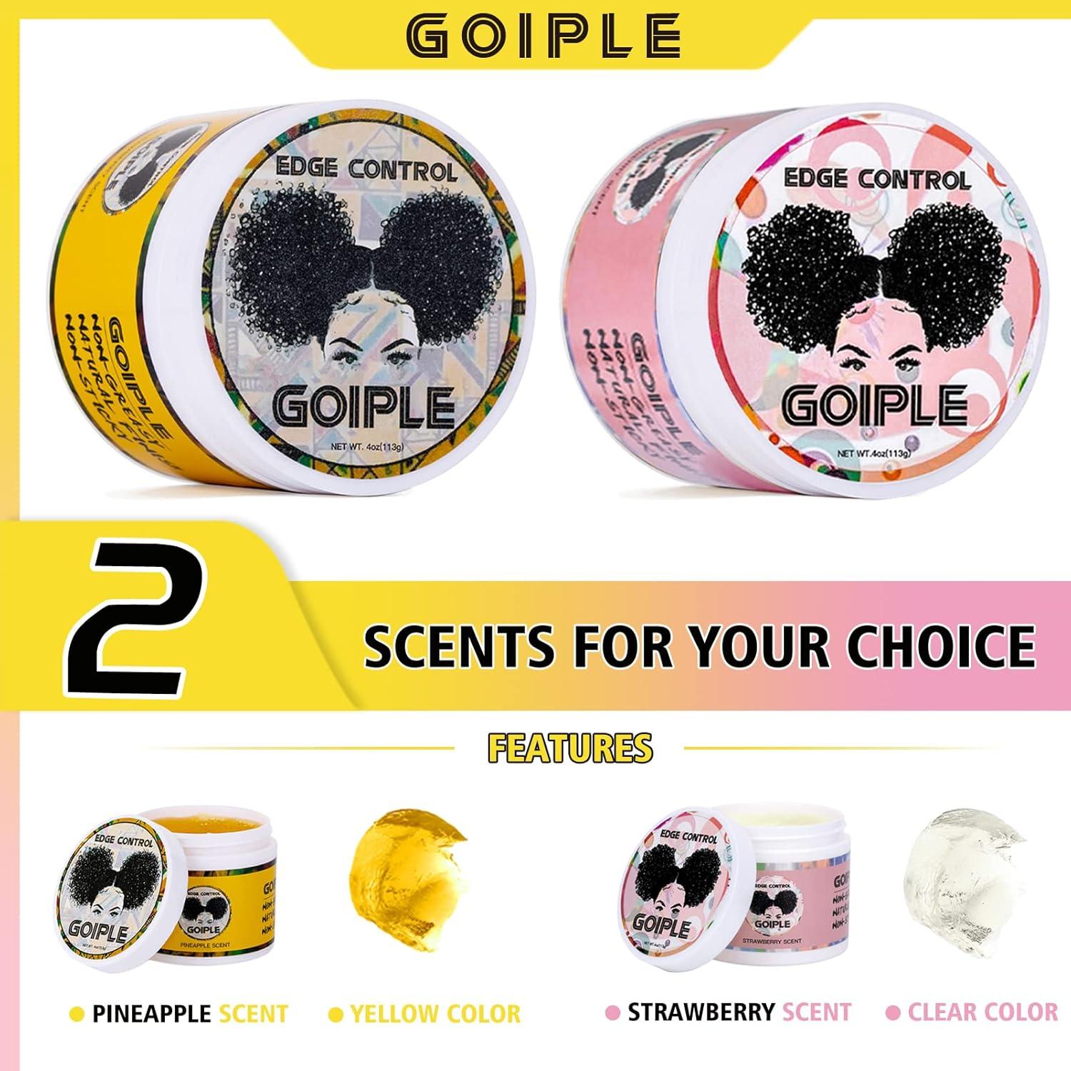 Goiple Edge Control Wax for Women Strong Hold Non-greasy Edge Smoother Pink 1Pack and Yellow 1Pack 4oz with Brush 2Pcs and Scarf