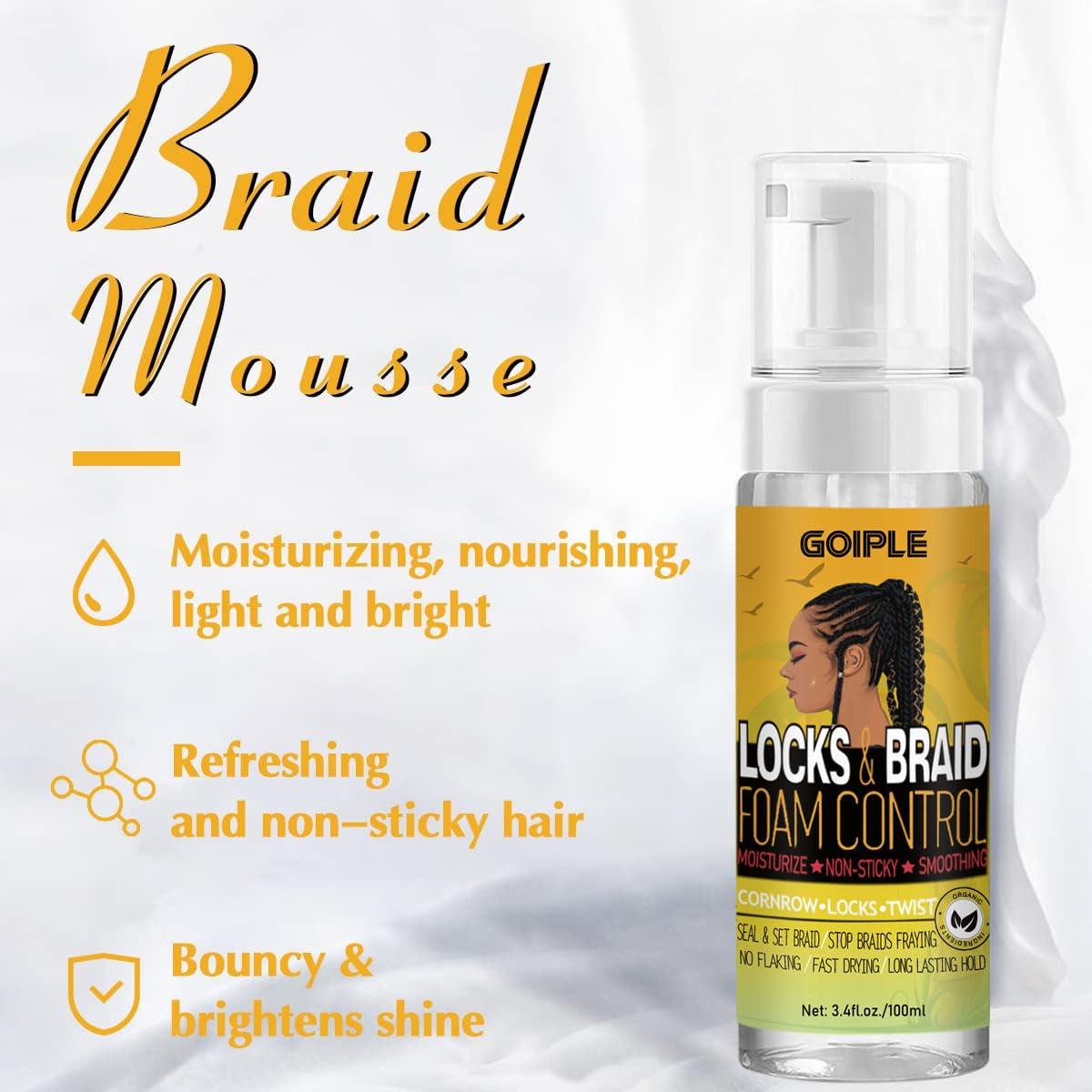 Goiple Hair Styling Mousses & Oil Set for Braids, Twist, Locs – No Flake Mousse for Style, Moisture, and Growth with Rosemary Oil, 3.4fl oz+1fl oz