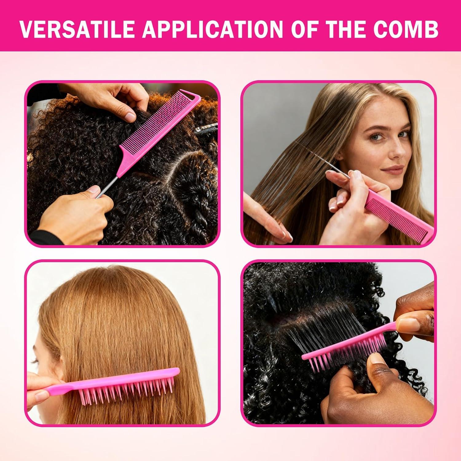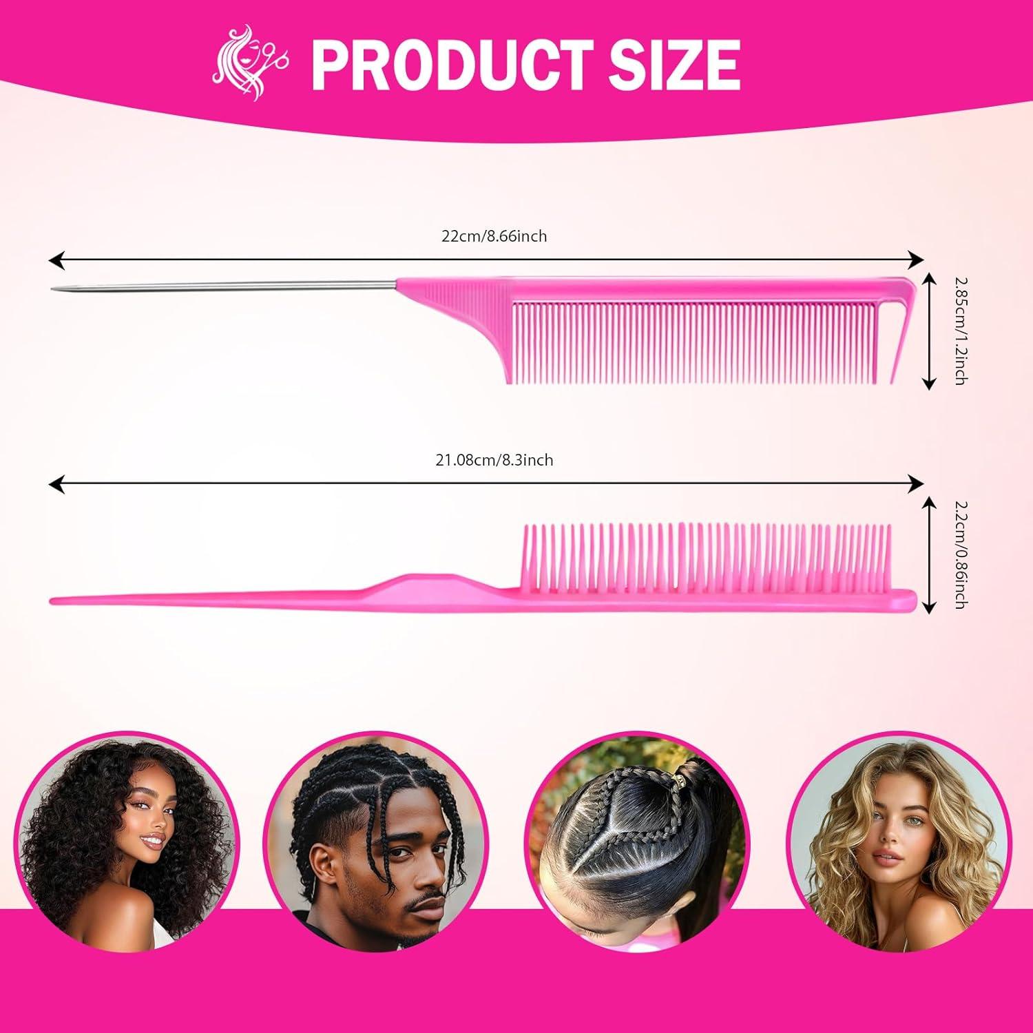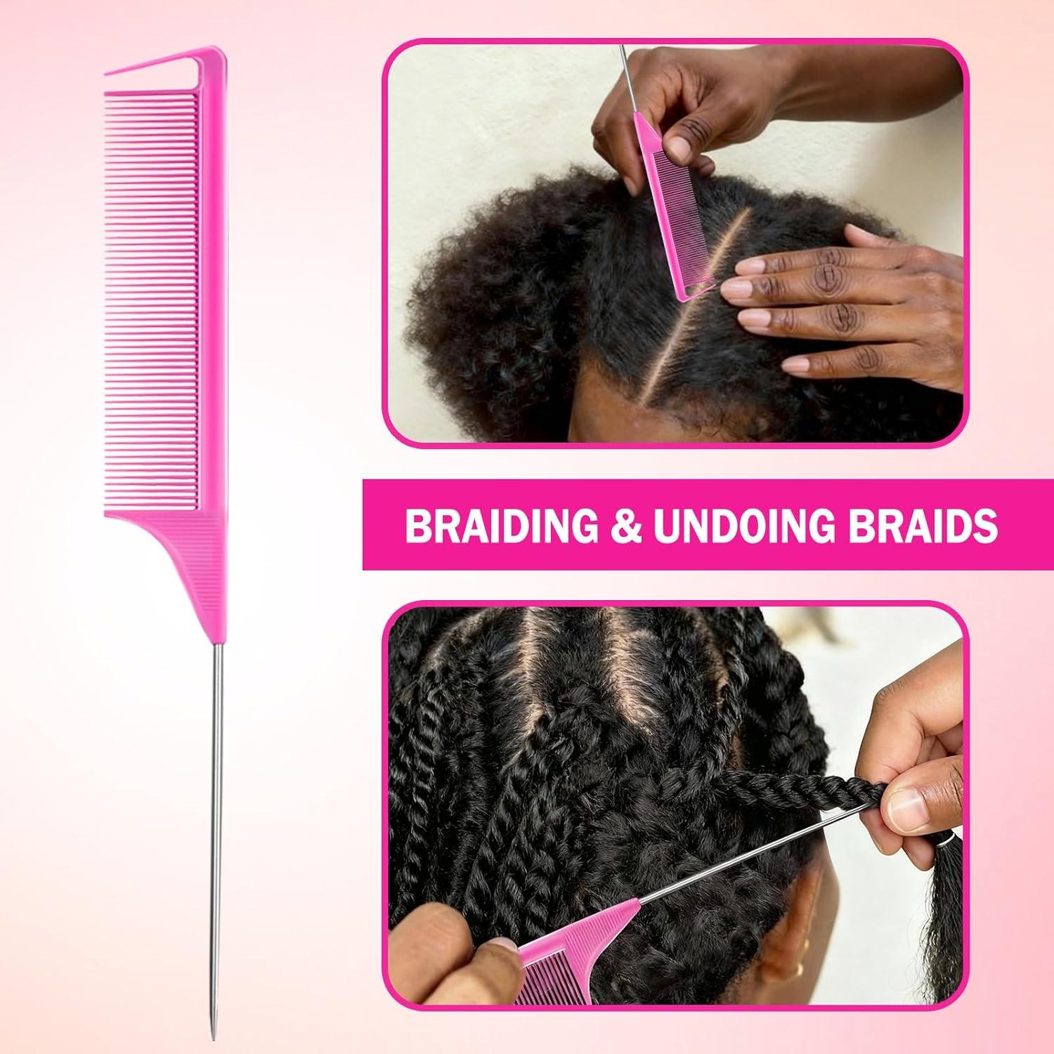 Rat tail combs for women feature tapered ends for precise parting & gentle unbraiding
