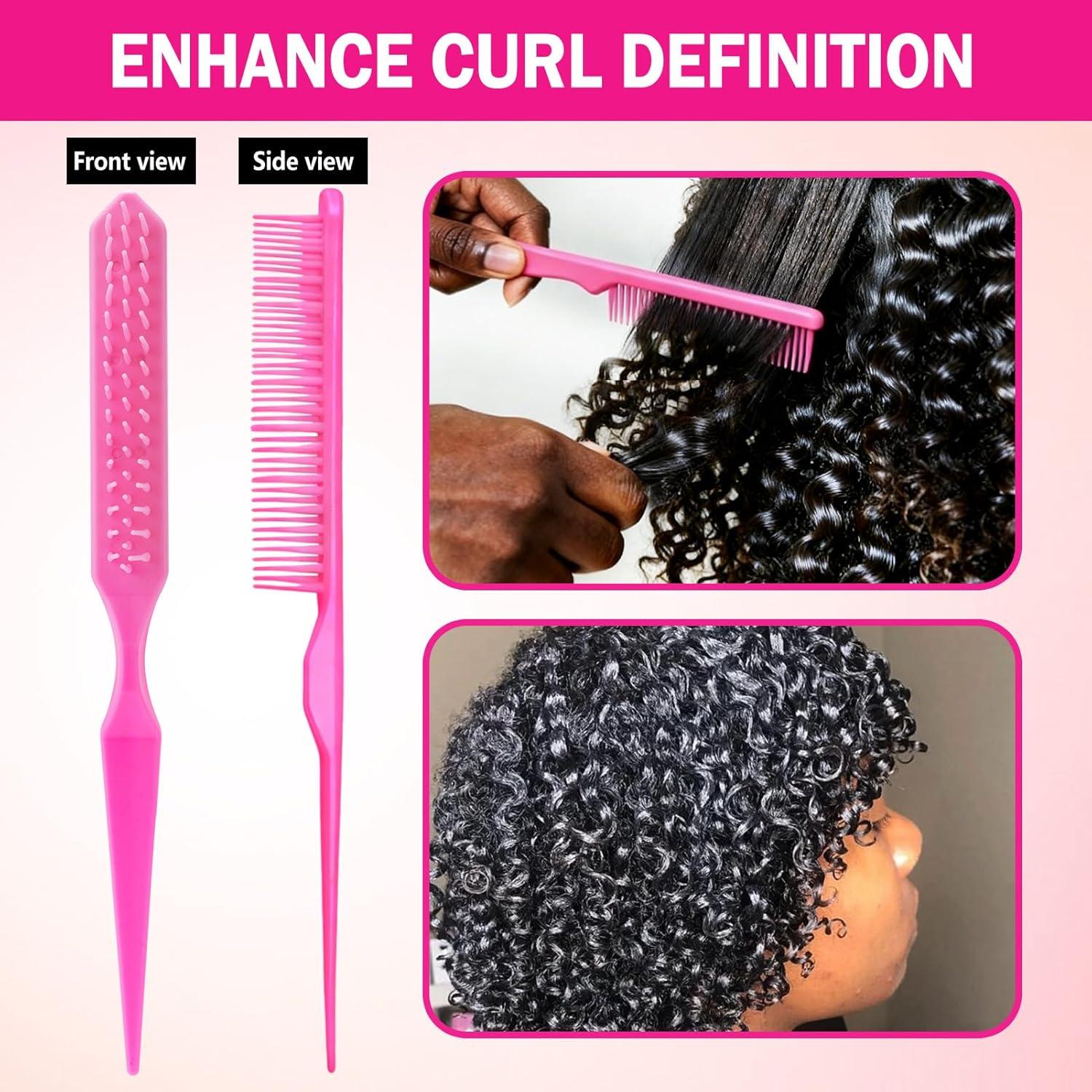 Hair Comb for Detangling Defining & Separating Curls – Rat Tail Comb 3 Row Unbraider Detangler Brush For Braids – Rose Water Spray To Moisturize & Soften Braids – Styling Combs for All Hair Types