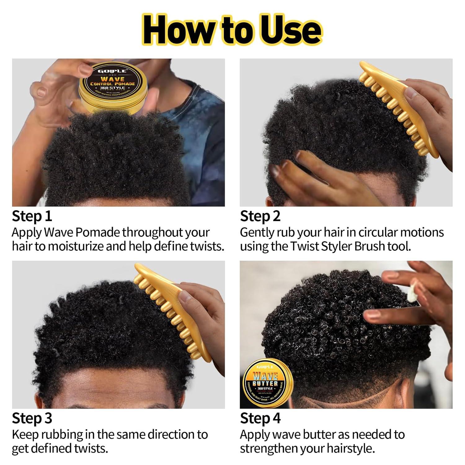 Apply Wave Pomade throughout your hair to moisturize and help define twists