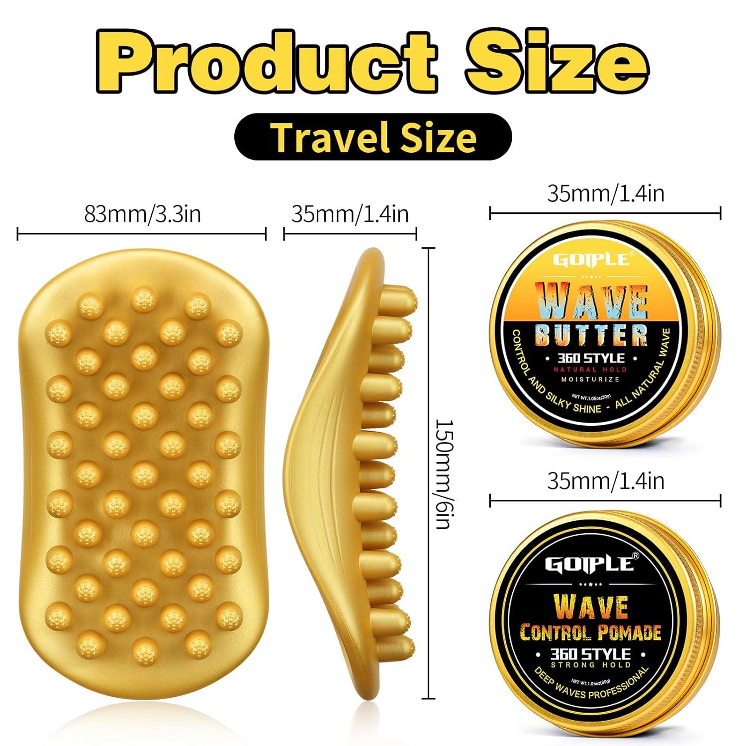 Hair Twist Sponge Brush Twist Styler Comb for Black Men – Washable Afro Curl Sponge Racket for Barbers & Daily Use, Ideal for Coiled, 4C Hair – Wave Pomade Butter Rubber Large Tooth Brush Set (Gold)