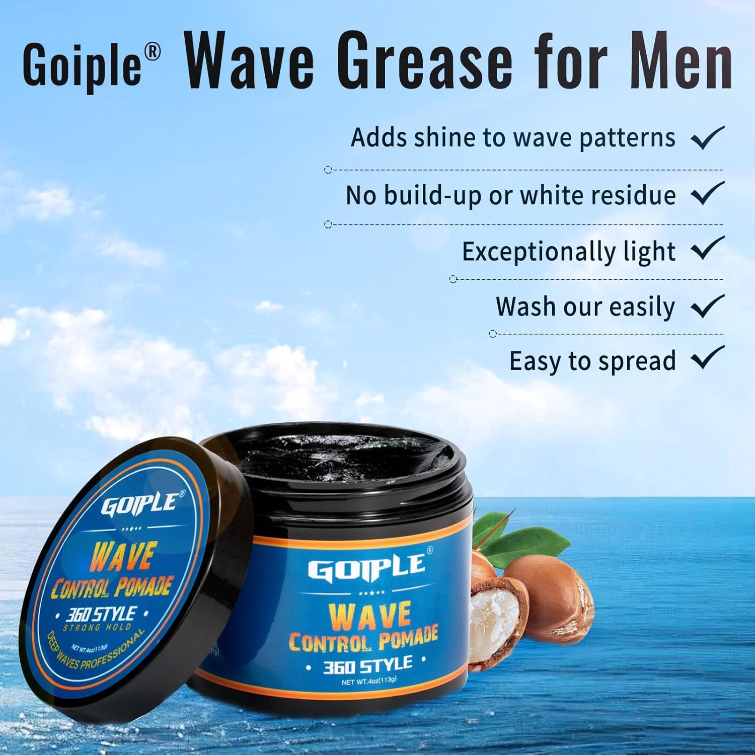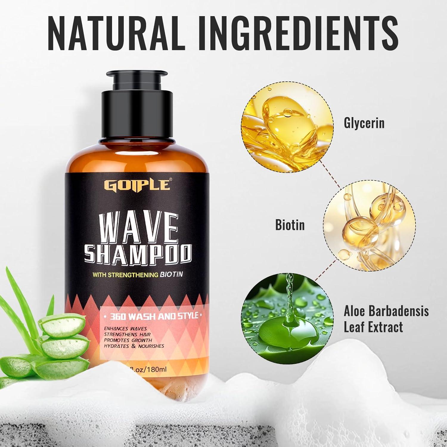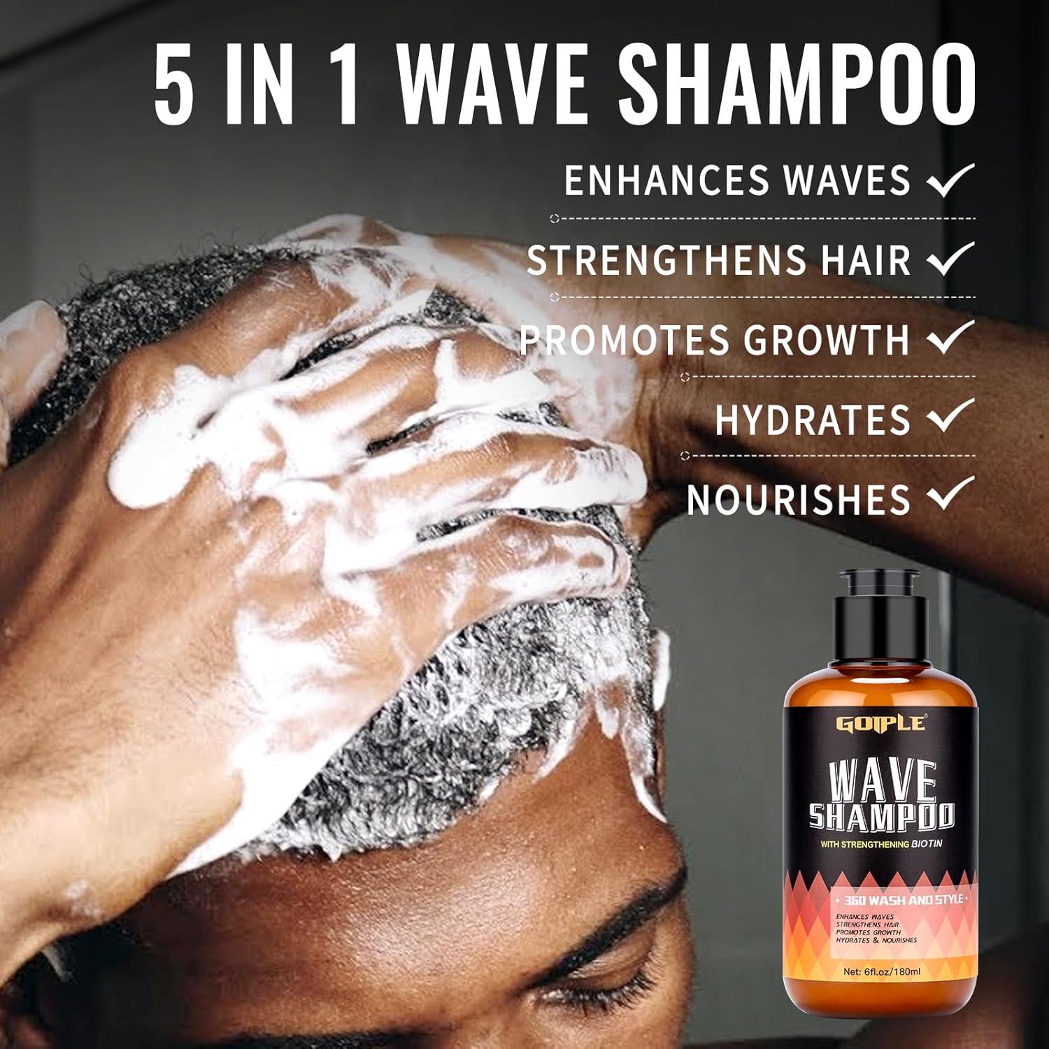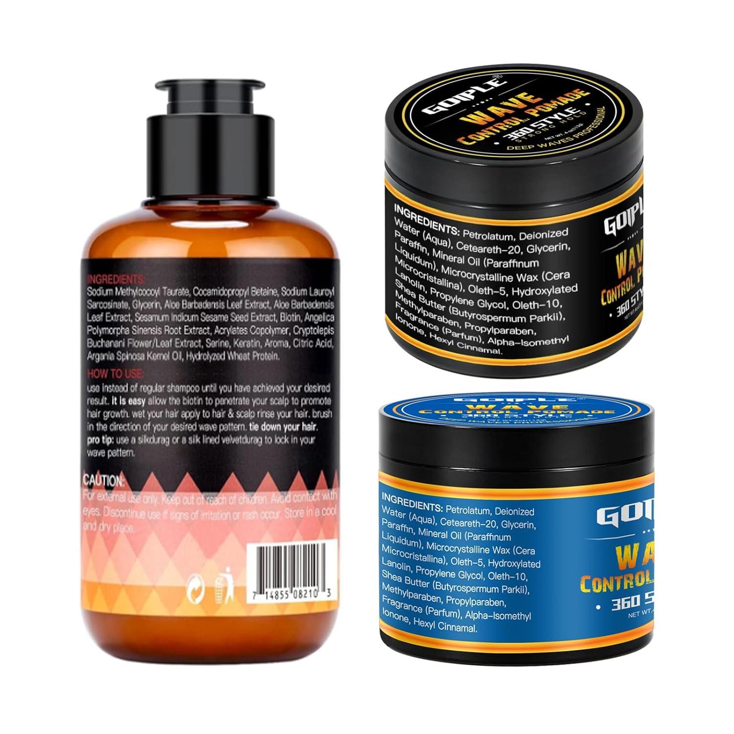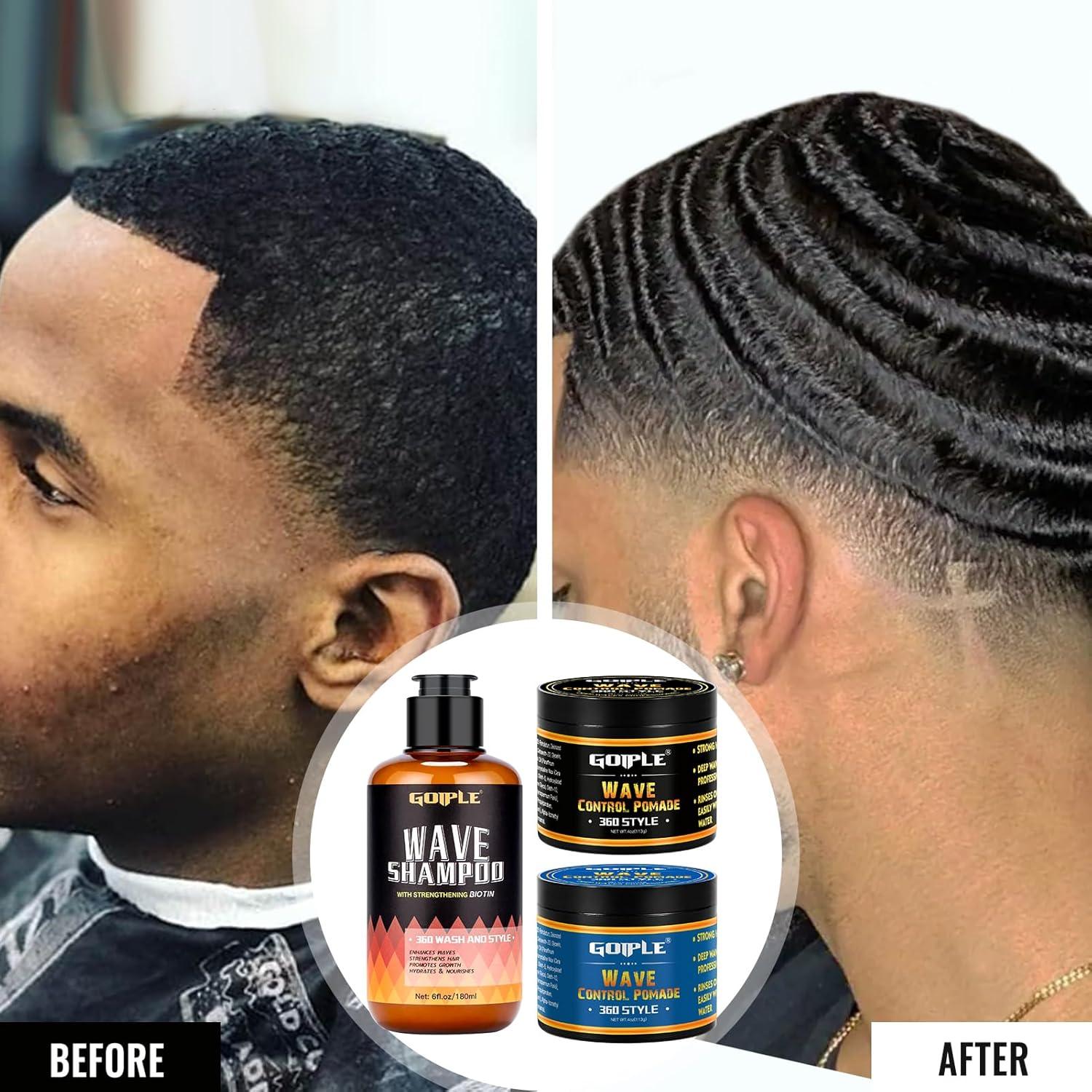 Professional Wave Care: Achieve salon-level 360 waves with our wave kit for black men, featuring water-based pomade for strong hold and wave shampoo that gently cleanses while maintaining healthy scalp moisture