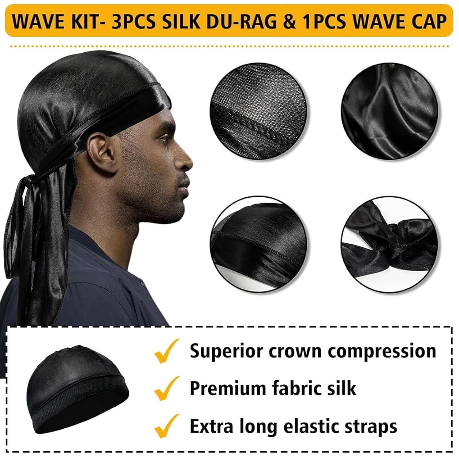 Wave Pomade for Men Strong Hold Easy Wash 360 Wave Training Hair Cream, Waves Grease for Men Promotes Layered Waves, Moisture, Control and Silky Shine, Wave Kit Curved Medium Waves Brush Silky Durag